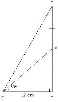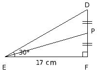 In the given figure, △DEF is a right angle triangle with ∠F = 90° and EF = 17 cm. P is the mid-point of DF. Find PF