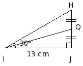 In the given figure, △HIJ is a right angle triangle with ∠J = 90° and IJ = 13 cm. Q is the mid-point of HJ. Find ∠QIH using tables.