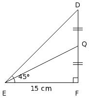 In the given figure, △DEF is a right angle triangle with ∠F = 90° and EF = 15 cm. Q is the mid-point of DF. Find QF