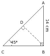 In the given figure, △ACB is right angled at B. If AB = 14 cm and ∠C = 45°, find AC