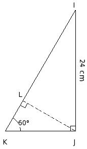 In the given figure, △IKJ is right angled at J. If IJ = 24 cm and ∠K = 60°, find KL