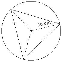 An equilateral triangle is inscribed in a circle of radius 10 cm. Find the length of its sides.