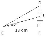 In the given figure, △DEF is a right angle triangle with ∠F = 90° and EF = 13 cm. T is the mid-point of DF. Find TF