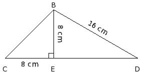 In the given figure, △BDC is right angled at C. If BC = 15 cm and ∠D = 45°, find BE