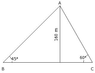 There are two temples one on each bank of a river, just opposite to each other. One of the temples is 10 m high. As observed from the top of this temple, the angles of depression of the top and foot of the other temple are 30° and 60° respectively. Find the height of the other temple. |