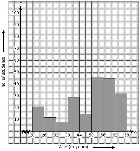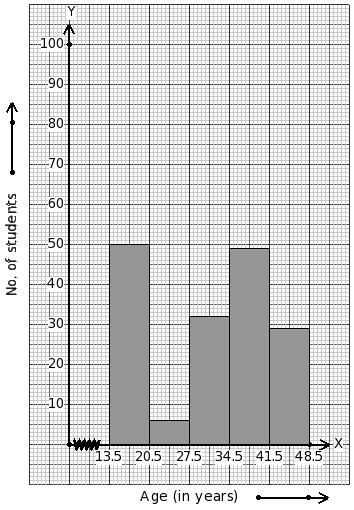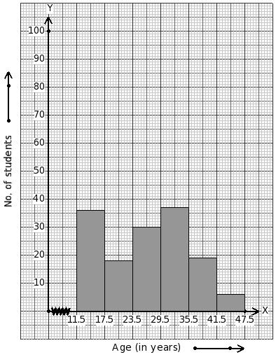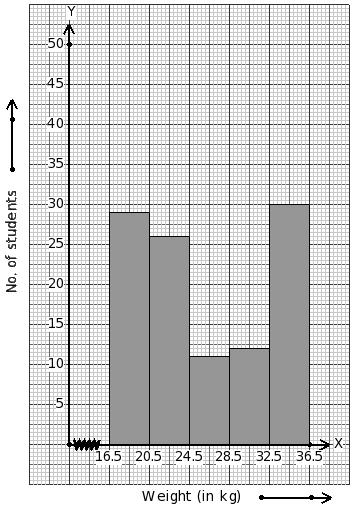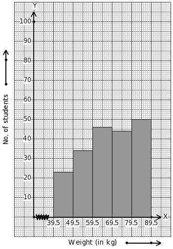 Weights of 137 students (in kg) are given below. Identify the class mark table for the given histogram.