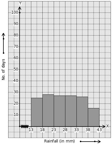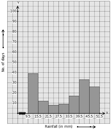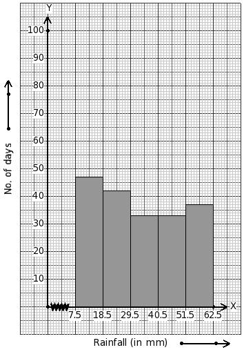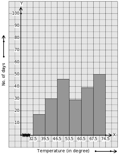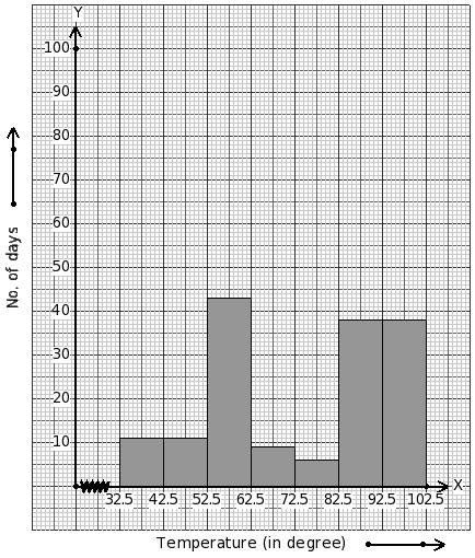Temperatures of 211 days (in °C) are given below. Identify the class mark table for the given histogram.
