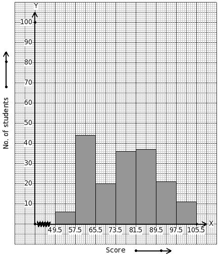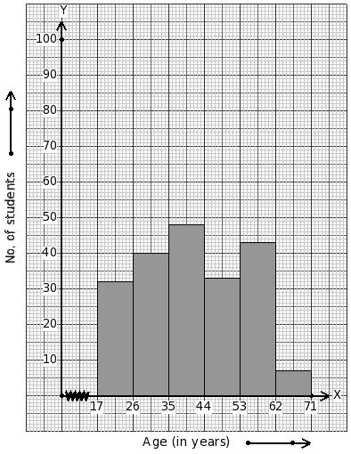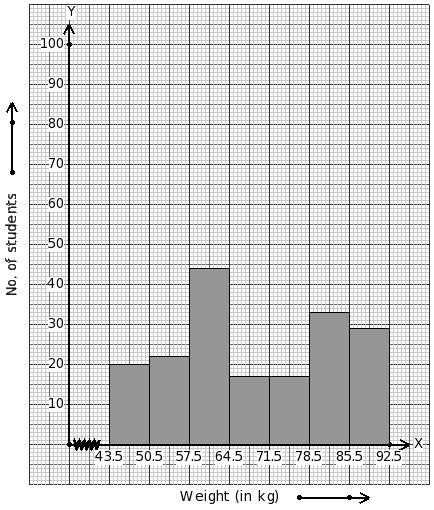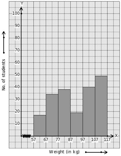 Weights of 197 students (in kg) are given below. Identify the class mark table for the given histogram.