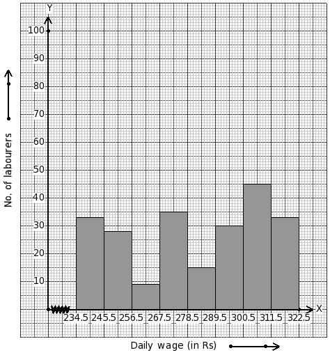 Daily wages of 160 labourers (in ₹) are given below. Identify the class mark table for the given histogram.