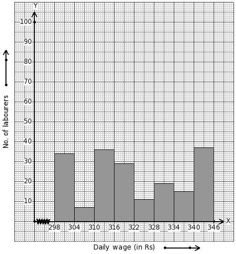 Daily wages of 188 labourers (in ₹) are given below. Identify the class mark table for the given histogram.