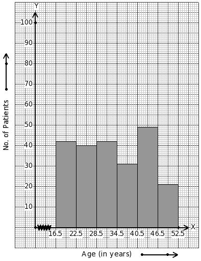 In a study of heart patients, the following observations are obtained. Identify the class interval table for the given histogram.