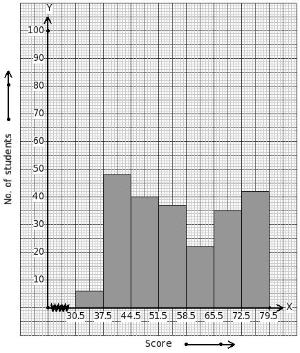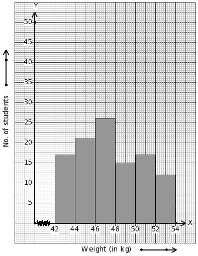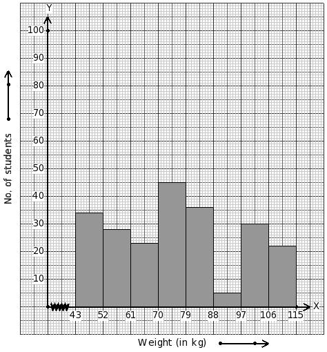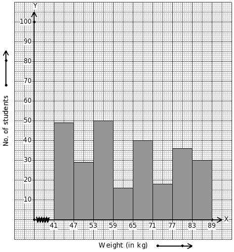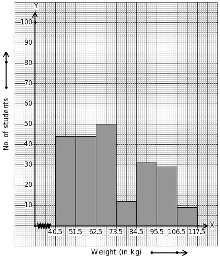 Weights of 223 students (in kg) are given below. Identify the class mark table for the given histogram.