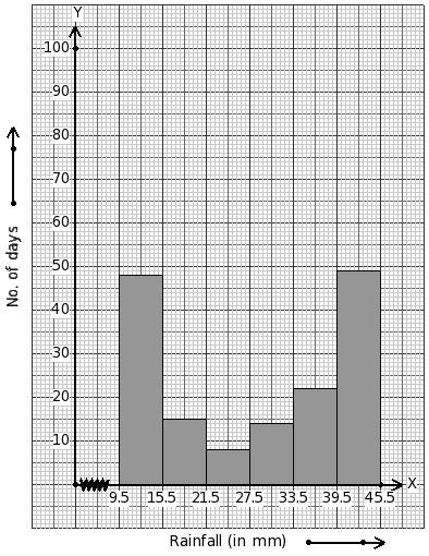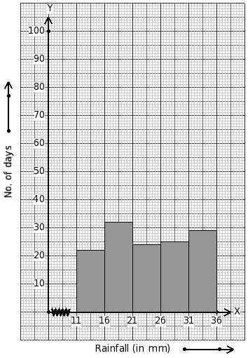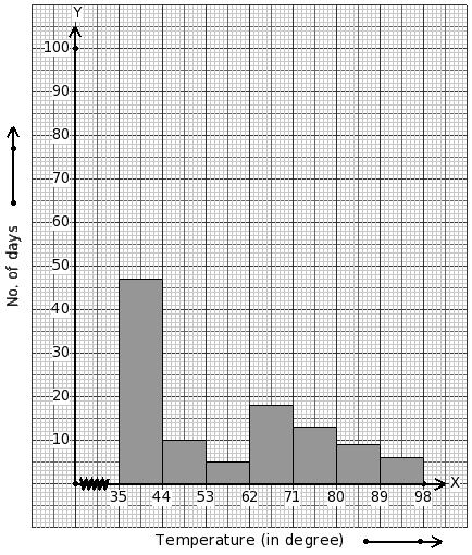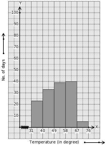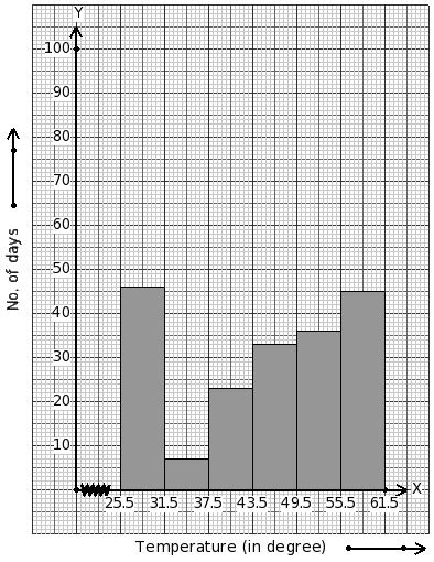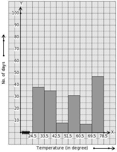Temperatures of 166 days (in °C) are given below. Identify the class mark table for the given histogram.