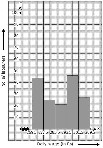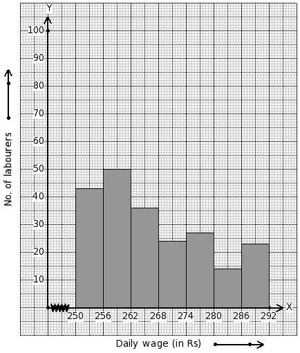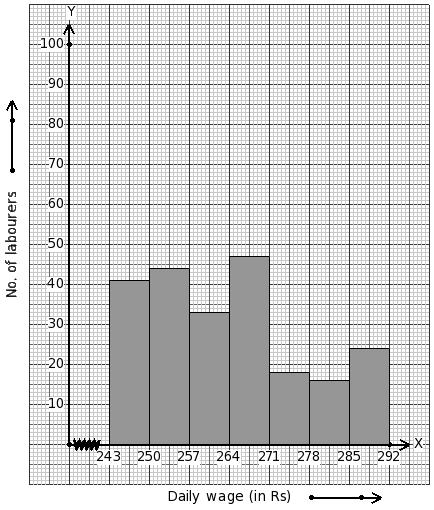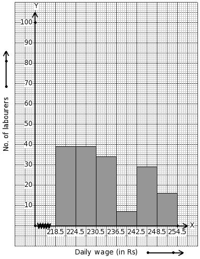 Daily wages of 223 labourers (in ₹) are given below. Identify the class mark table for the given histogram.