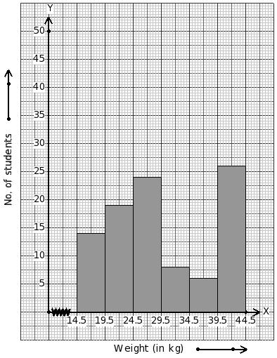 Weights of 219 students (in kg) are given below. Identify the class mark table for the given histogram.