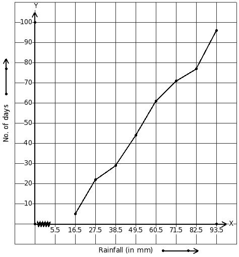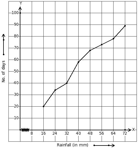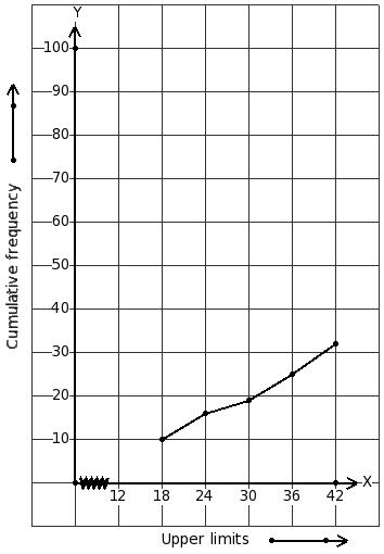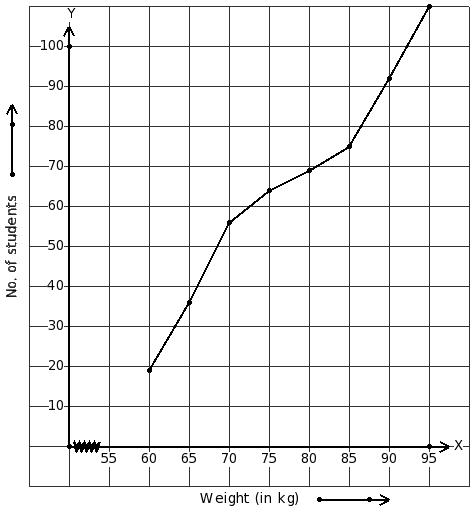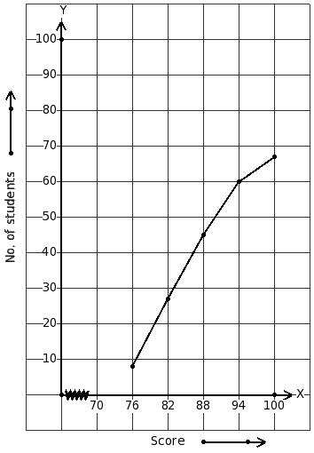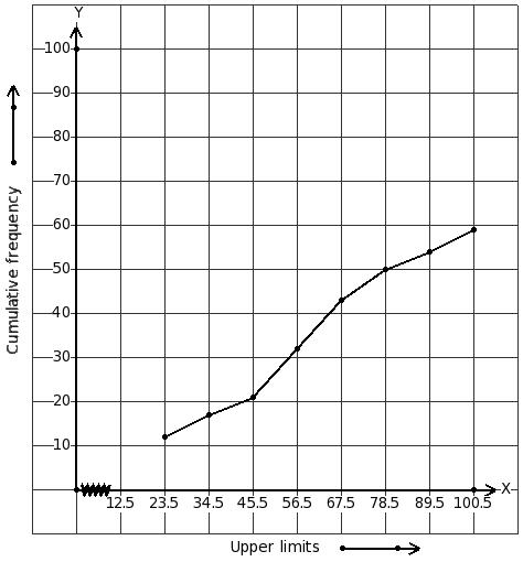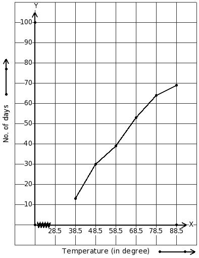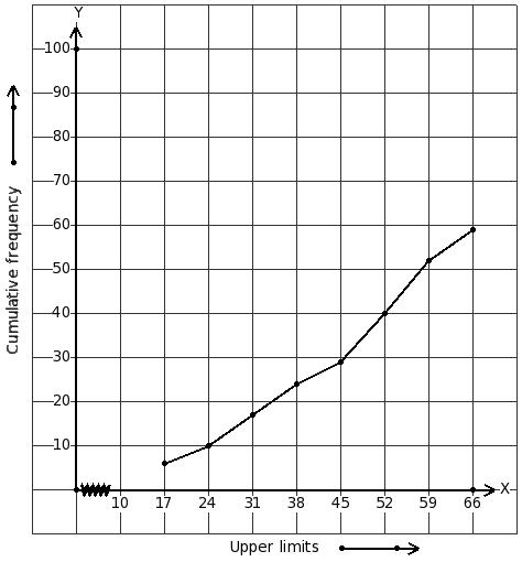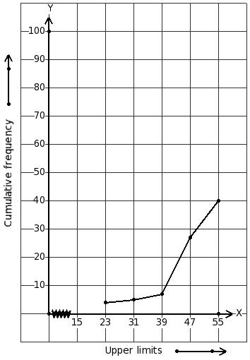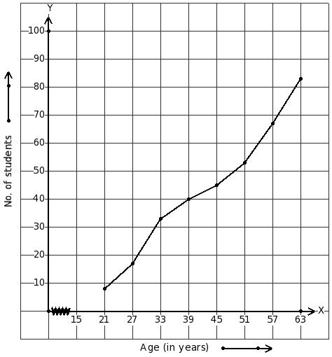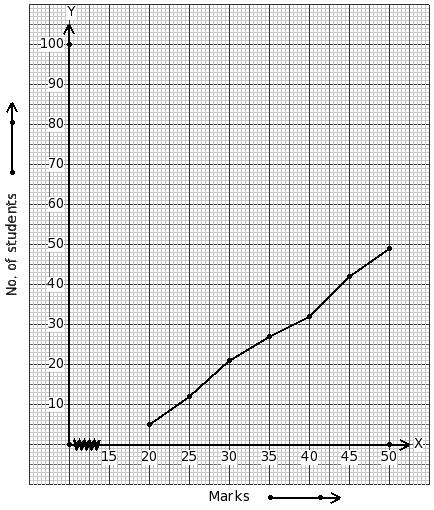 The marks obtained by 49 students of a class in an examination is given below. Identify the frequency distribution table for the given less than ogive.