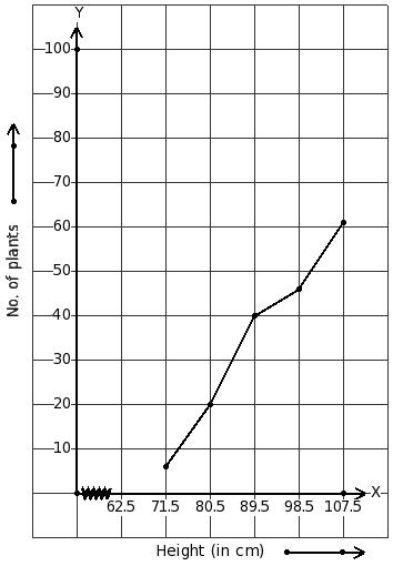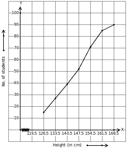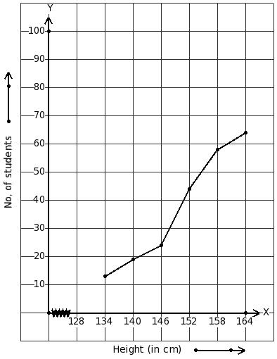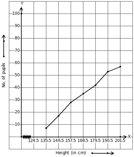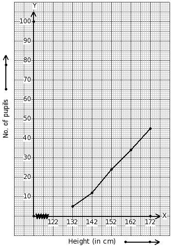 The heights of 45 pupils in a school are given below. Identify the frequency distribution table for the given less than ogive.
