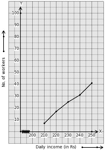 The daily income of 41 workers of a factory is given below. Identify the frequency distribution table for the given less than ogive.
