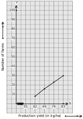 The production yield in kg per hectare of wheat of 30 farms of a village is given below. Identify the frequency distribution table for the given less than ogive.