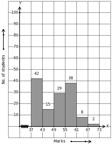 The histogram given below represents the marks obtained by some candidates in an examination.