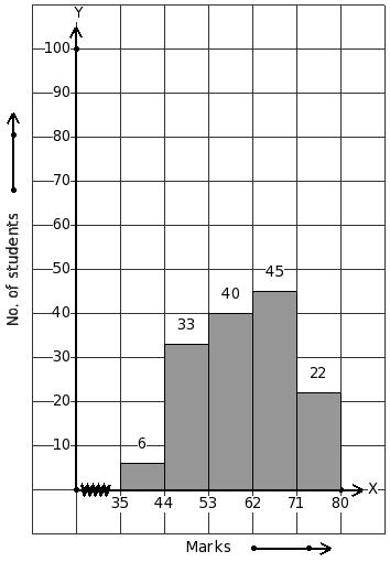 The histogram given below represents the marks obtained by some candidates in an examination.