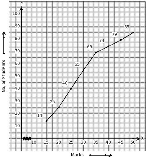 The marks obtained by certain students in a mathematics examination are given below. Estimate the median.