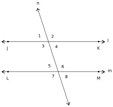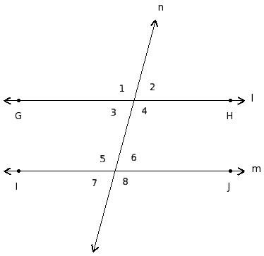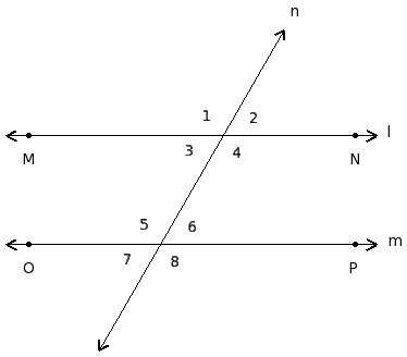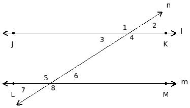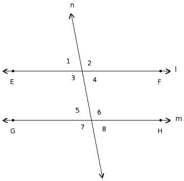 ∠1 , ∠5 ; ∠2 , ∠6 ; ∠3 , ∠7 ; ∠4 , ∠8