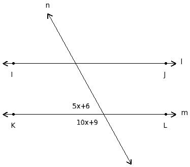In the given figure l ∥ m. Find the value of 'x'