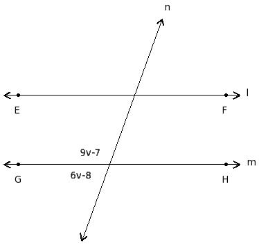 In the given figure l ∥ m. Find the value of 'v'