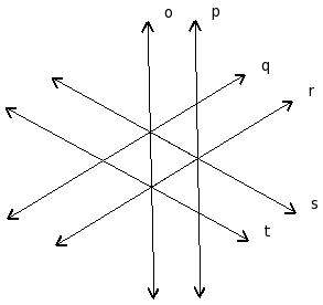 In the given figure, o , p , q , r , s , t are lines in a plane. By looking at the figure, which of the following are true?