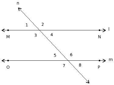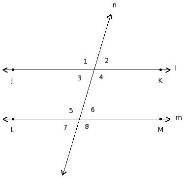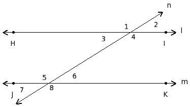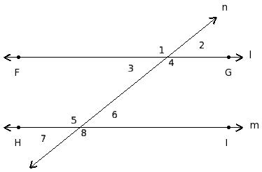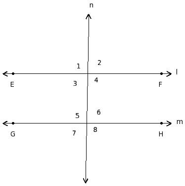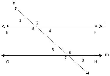 ∠1 , ∠5 ; ∠2 , ∠6 ; ∠3 , ∠7 ; ∠4 , ∠8