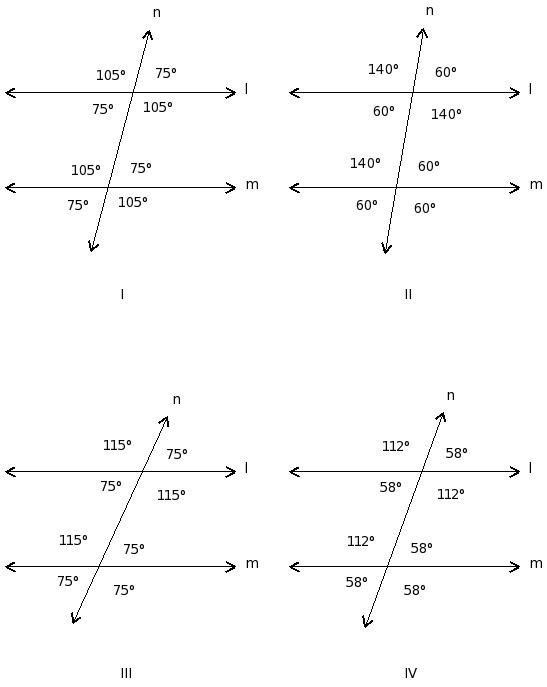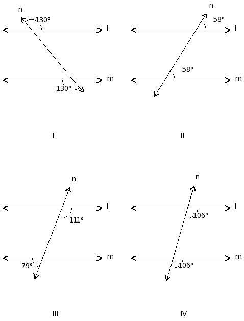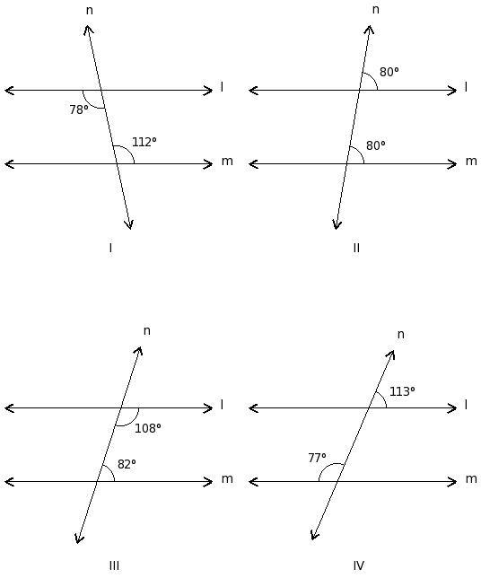 In which of the figures given bellow, l ∦ m(not parallel)?