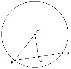 If a chord EF = 16 cm is drawn in a circle with radius OE = 11 cm, find its distance from the centre of the circle