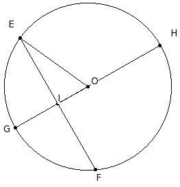 The diameter GH of a circle with centre 'O' is perpendicular to the chord EF. If EF = 22.00 cm and GI = 7.08 cm, find the radius of the circle.