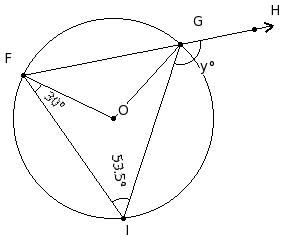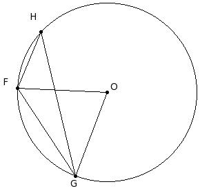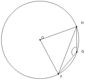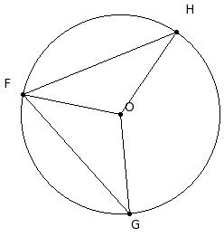 O is the centre of the circle. If ∠GOF = 107° and ∠HOF = 113°, find ∠GFH