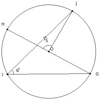 O is the centre of the circle and OI = HI. Find ∠IOG