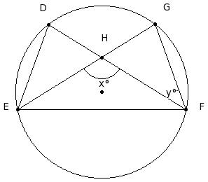 In the given figure, chords DF & EG meet at H. Given x = 116° and y = 38°, find ∠EDF