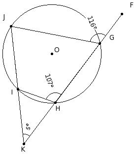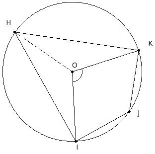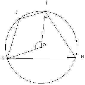 O is the centre of the circle. If ∠IOK = 105°, find ∠H