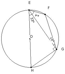 O is the centre of the circle. If ∠GEH = 33° and ∠EGF = 16°, find ∠FEG