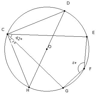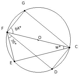In the given figure, O is the centre of the circle and CF is a diameter. If ∠CFG = 64° and ∠DFE = 36°, find ∠FCE