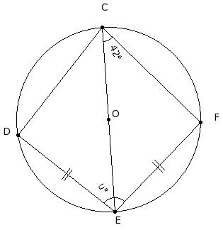 In the given figure, O is the centre of the circle , chord DE is equal to chord EF and CE is a diameter. If ∠FCE = 42° find ∠DEF