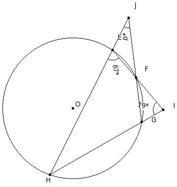 In the given figure, ∠OIH = 27° & ∠GFE = 46°, find ∠OHE