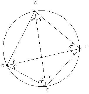 O is the centre of the circle. If ∠FHG = 52° and ∠HFI = 34°, find v°, w°
