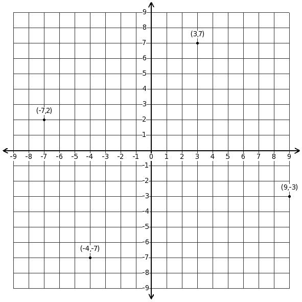 Which of the points (3,7), (-6,5), (-9,-5) and (8,-7) belong to the first quadrant?