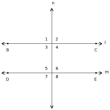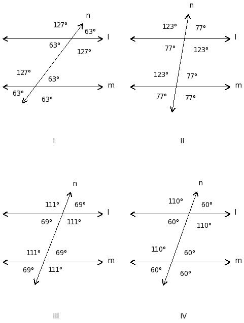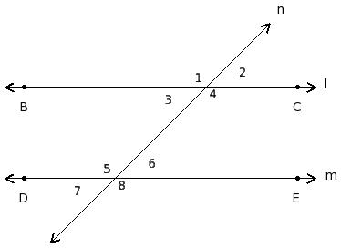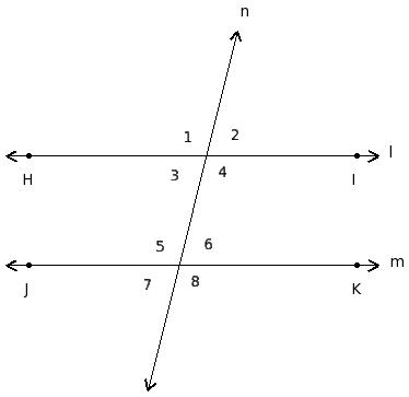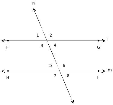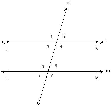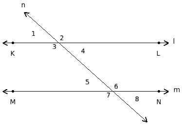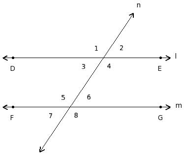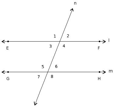 ∠1 , ∠5 ; ∠2 , ∠6 ; ∠3 , ∠7 ; ∠4 , ∠8