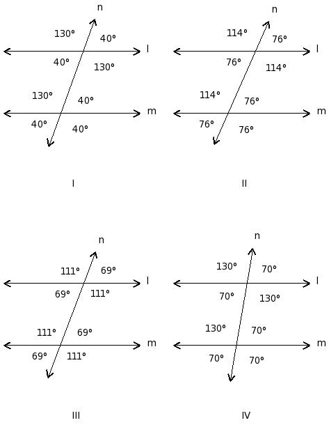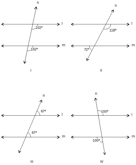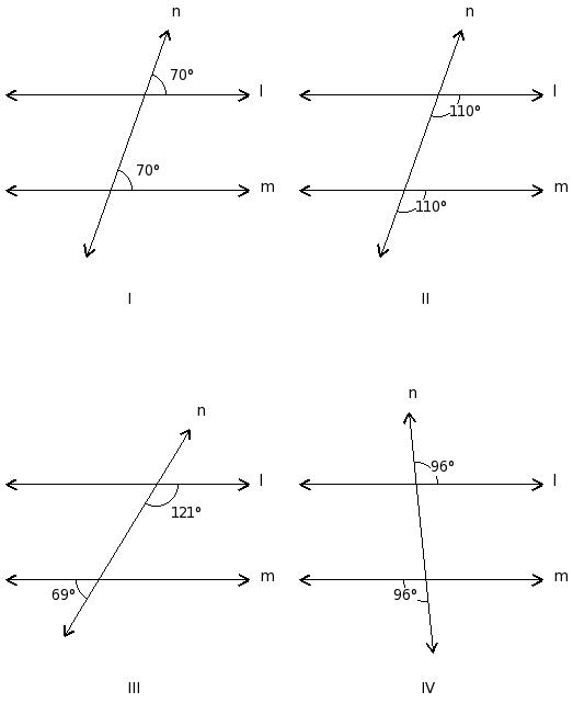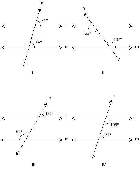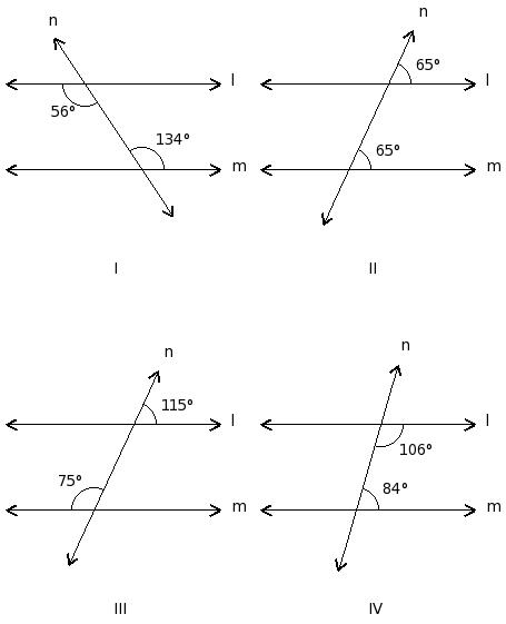In which of the figures given bellow, l ∦ m(not parallel)?