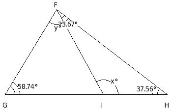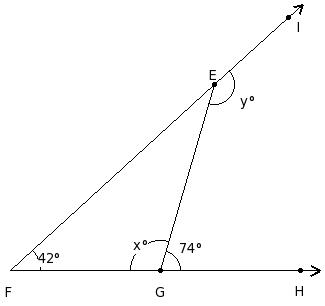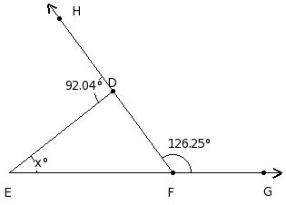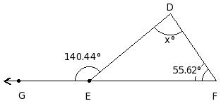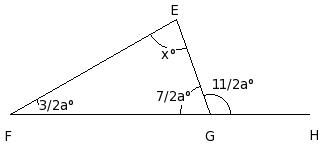 In the given figure, △EFG in which side FG has been produced to H. If ∠GEF = x° , ∠EFG = (3/2a)° , ∠FGE = (7/2a)° and ∠EGH = (11/2a)°, find the values of a and x.