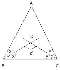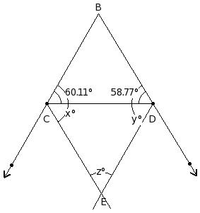 In the given figure, △BCD in which ∠C = 60.11° and ∠D = 58.77°. BE and CD bisects each other. Find the value of z