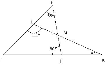 In the given figure, it is given that JI ∥ LK , ∠JLK = 84° and ∠JIH = 71°. Find the value of x.
