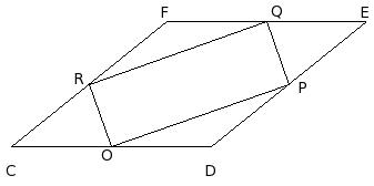 CDEF is a rhombus. O, P, Q and R are mid-points of sides CD, DE, EF and FC. Find ∠PQR